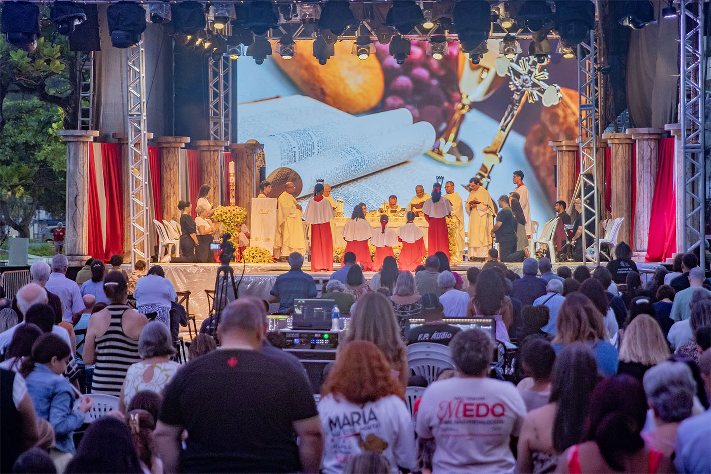 Antes da tão aguardada apresentação, uma missa de Páscoa e Ação de Graças reuniu fiéis na praia, celebrada pelo padre Gleison de Lima, que contou com a presença de sacerdotes de diversas paróquias da cidade. Durante sua homilia, o padre enfatizou a relevância da espiritualidade no cotidiano. “Jesus não está mais no túmulo. Ele ensinou o amor ao próximo e esse período é uma oportunidade de conversão, para que possamos sair dessa Quaresma mais santos. É tempo de amar, perdoar e ser luz na vida dos outros”, destacou.